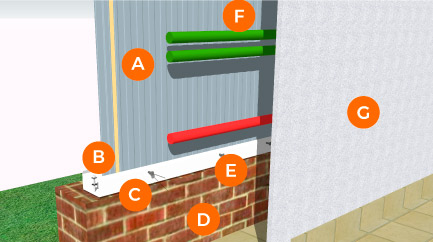 F. Instalaciones ocultas entre panel y placa de yeso interior.
