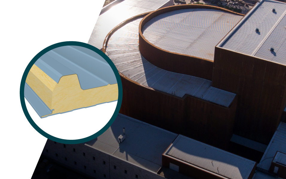 Panel de acero fabricado en proceso de línea contínua, con núcleo aislante de poliuretano inyectado de alta densidad. Cara exterior en chapa galvanizada prepintada y cara inferior con film de polipropileno blanco (foil).